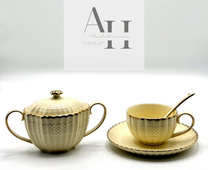 ست چایی خوری چینی نیوسان کرم خارجی مدل لب طلا