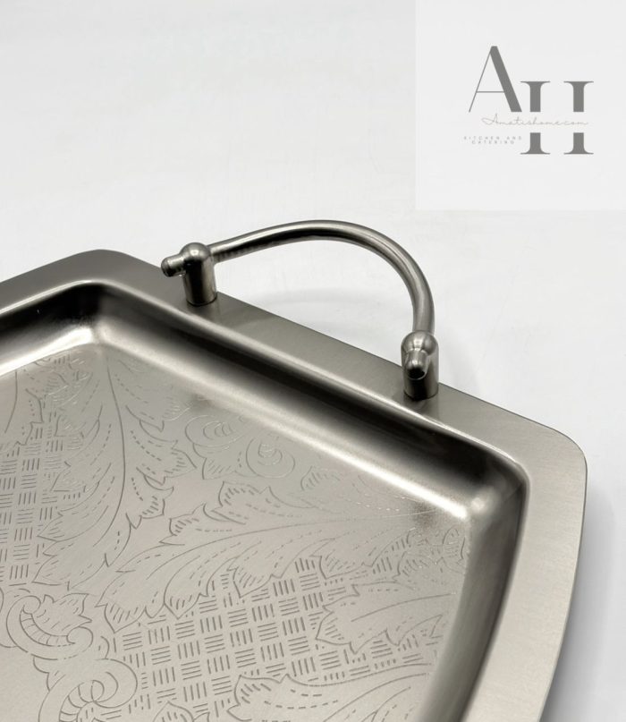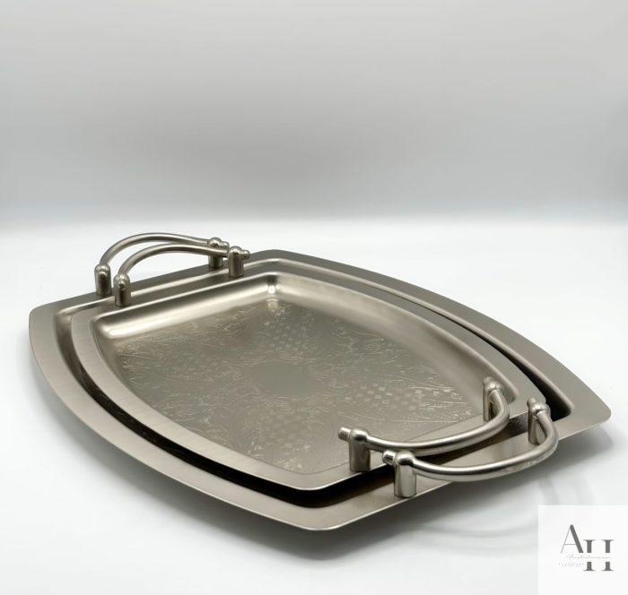 سینی نیکل مستطیل بزرگ 2 عددی دسته برنجی کد 6097