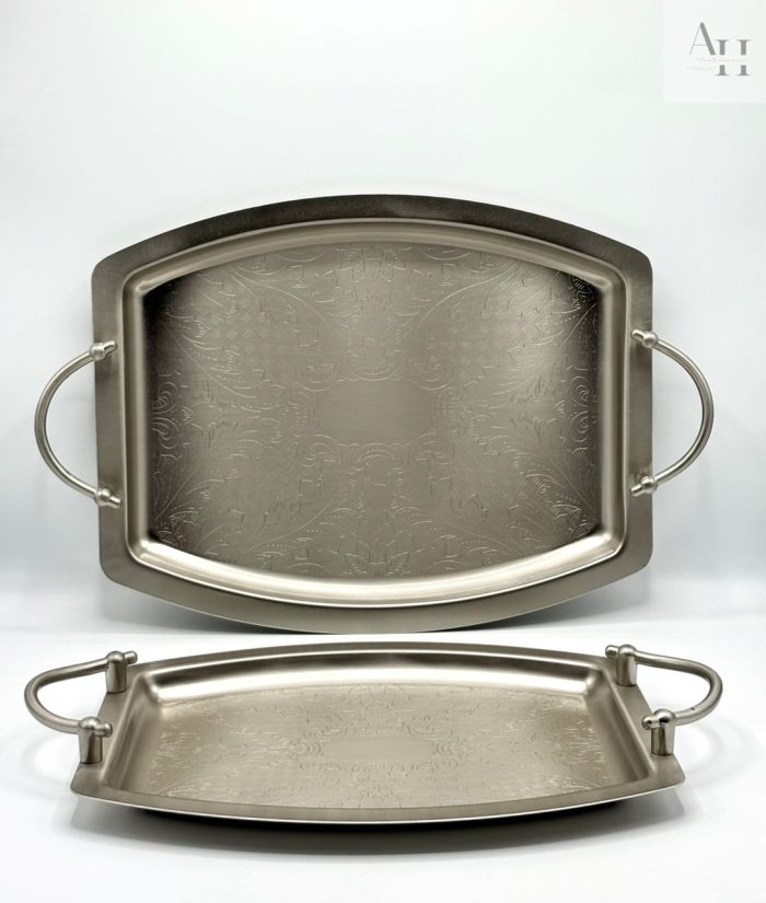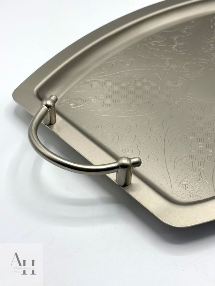 این مدل از سینی های سالی نو طرفداران بسیار زیادی دارد چرا که هم مینیمال و ساده هستند و هم رنگ نیکل و پتینه مات، خاص شیک و همیشه بورس بازار است .