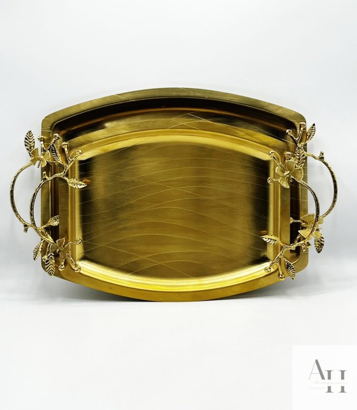 سینی دو تیکه استیل دسته پروانه طلایی سالی نو کد 80081/2 SGP