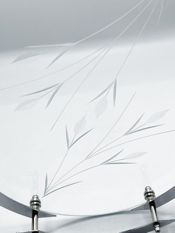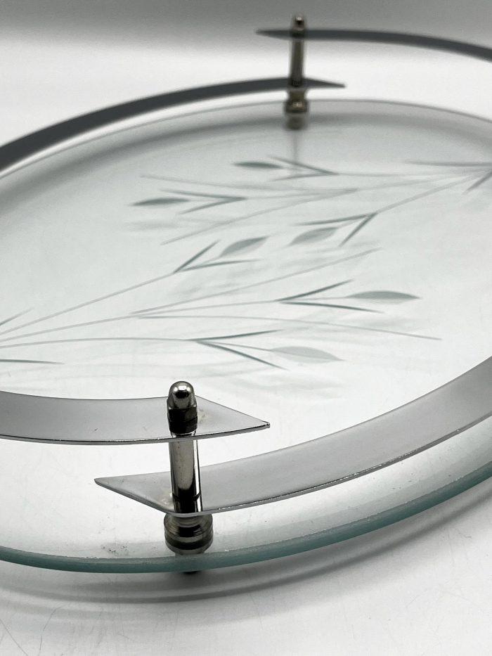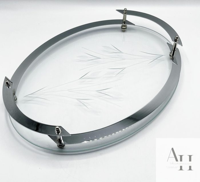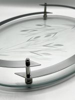 سینی شیشه ای سالی نو طرح بابونه با شیشه ذخیم نشکن طراحی ساده و مینیمال با دیواره هایی از استیل ابکاری شده یک ایده خاص برای پذیرایی چای و شربت میباشد