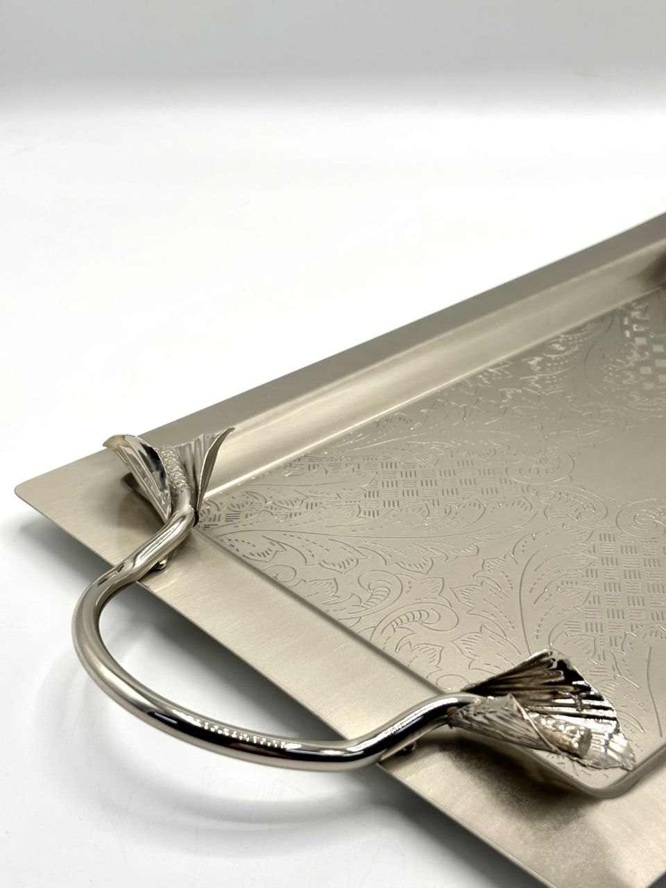 سینی پذیرایی مستطیل نیکل دو سایز دسته لیلیوم سالی نو کد 6097/22LNN