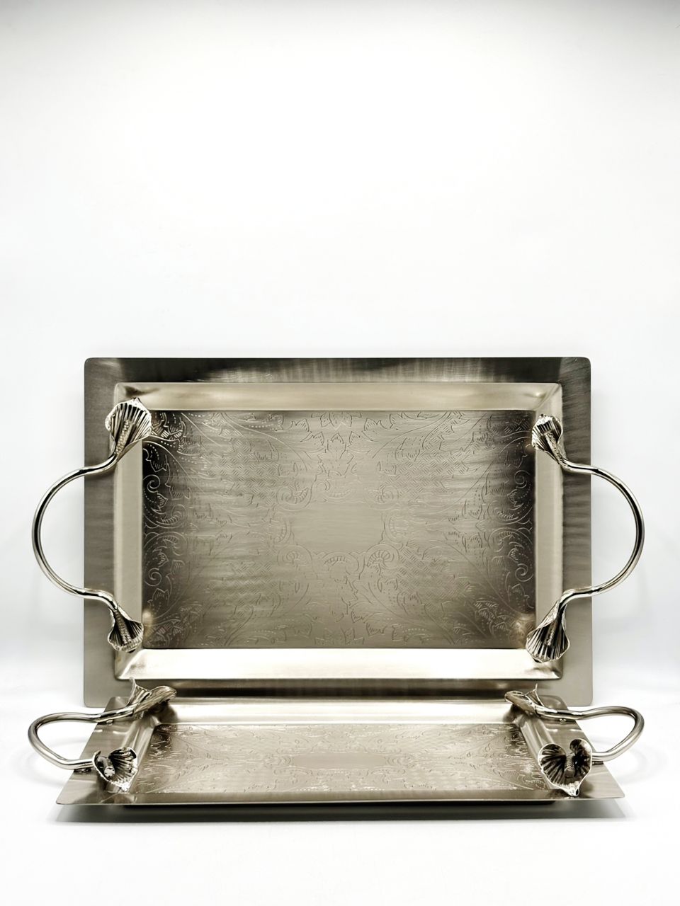 سینی پذیرایی نیکل دو سایز دسته لیلیوم سالی نو کد 6089/22LNN
